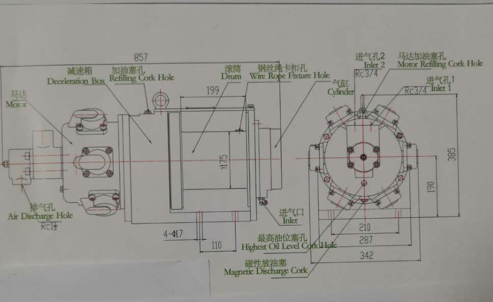 JQHSY-10×24遠(yuǎn)程控制氣動(dòng)絞車,采用壓縮空氣為動(dòng)力,推動(dòng)TMH4活塞式氣動(dòng)馬達(dá)工作。通過二級齒輪減速,把扭矩傳給滾筒。該氣動(dòng)絞車還具有停車剎車功能,為了保證氣動(dòng)絞車的安全性。適合海上、陸地油田鉆井二層平臺(tái)上拖拉鉆桿及套管之用。氣動(dòng)絞車的操縱,是靠馬達(dá)體上的手操縱轉(zhuǎn)向閥實(shí)現(xiàn)正轉(zhuǎn)、反轉(zhuǎn)、停止等項(xiàng)動(dòng)作。